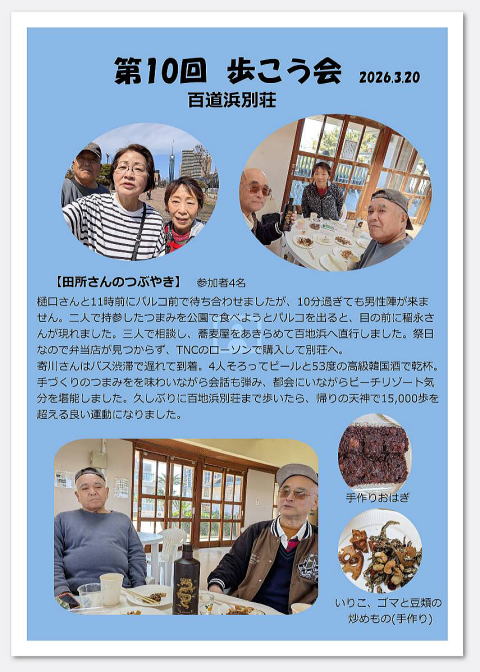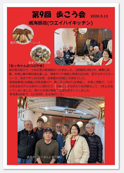 まだまだ、しっかりと毎週継続している 歩こう会(アルコール会?:笑い)