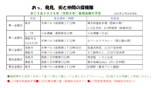 福岡での恒例の 歩こう会の予定が本吉君から公表された。