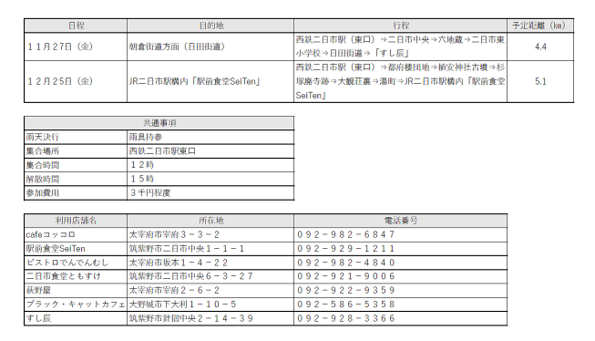 | 第1便 | 福岡 歩こう会の 予定 |